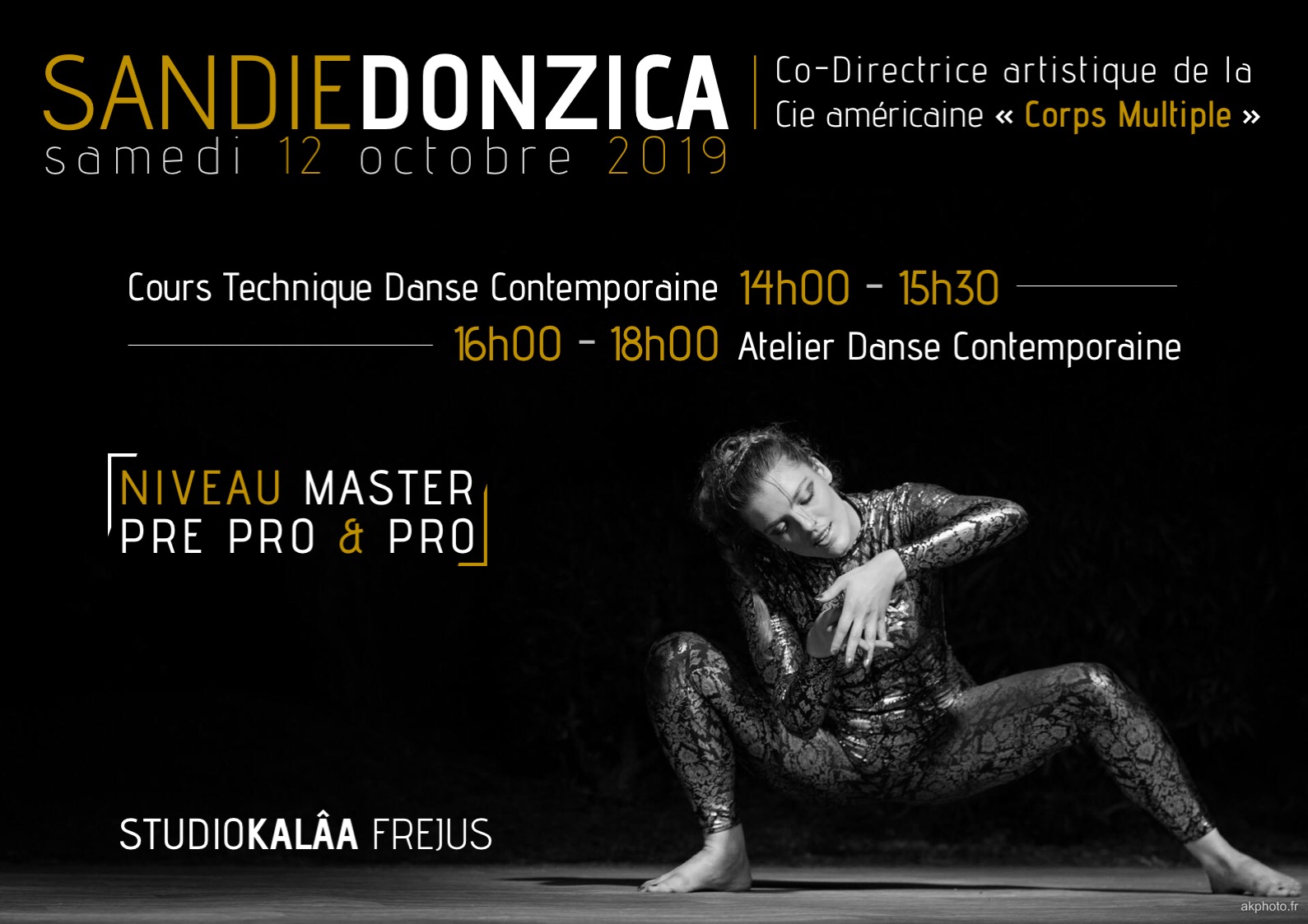 Corps Multiple started to offer Dance Masterclasses in France in the fall 2019, taught by the Co-Artistic Director, Sandie Donzica. The masterclass is composed of a professional dance training and an open improvisation workshop based on the techniques and tools developed within the company. The first masterclass took place on October 12, 2019 in Fréjus FRANCE. Studio Kalâa invited the company to teach for dancers based in the South of France. The second one was taught in residency in Nice at Studio Antipodes, November 5-6, 2019. Sandie Donzica taught during two days a professional dance training and an improvisation workshop.