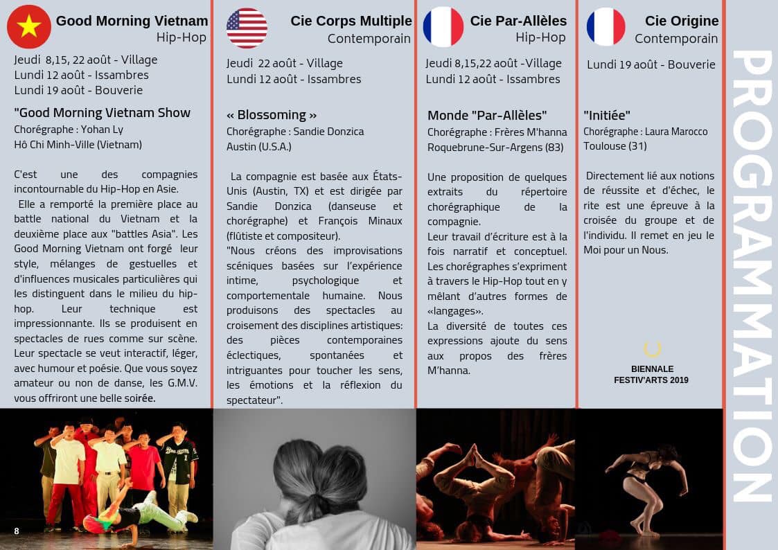 This festival welcomes 54 artists from Asia, America and France. It is is open to a very large audience, national and international.The goal of this festival is to bring all audiences around a dance event. Sandie Donzica performed our choreographic solo on August 12 in Les Issambres and August 22 in Roquebrune-sur-Argens.